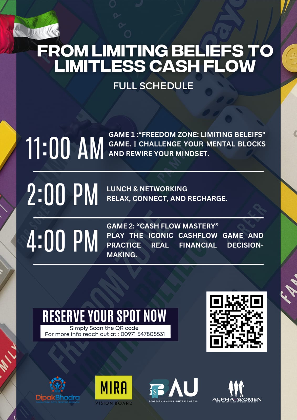 4:00 PM: GAME 2: “CASH FLOW MASTERY” PLAY THE ICONIC CASHFLOW GAME AND PRACTICE REAL FINANCIAL DECISION-MAKING.